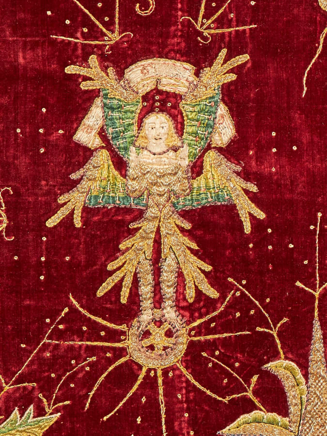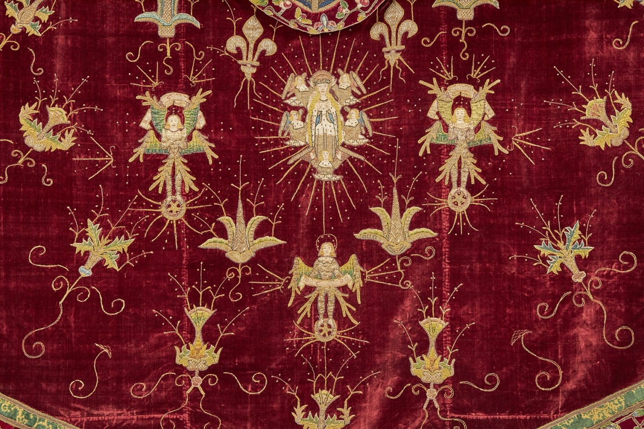 A red velvet cope with opus anglicanum embroideries