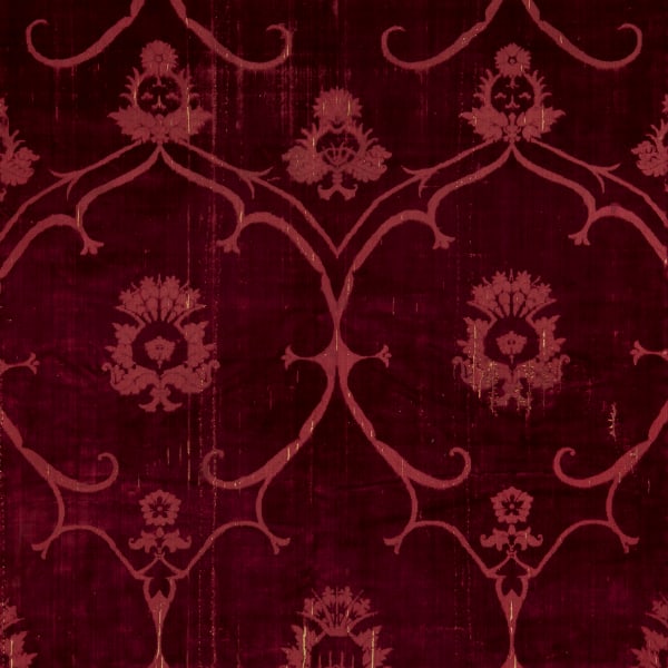 A panel of crimson silk velvet